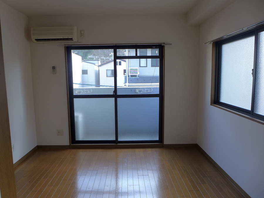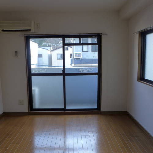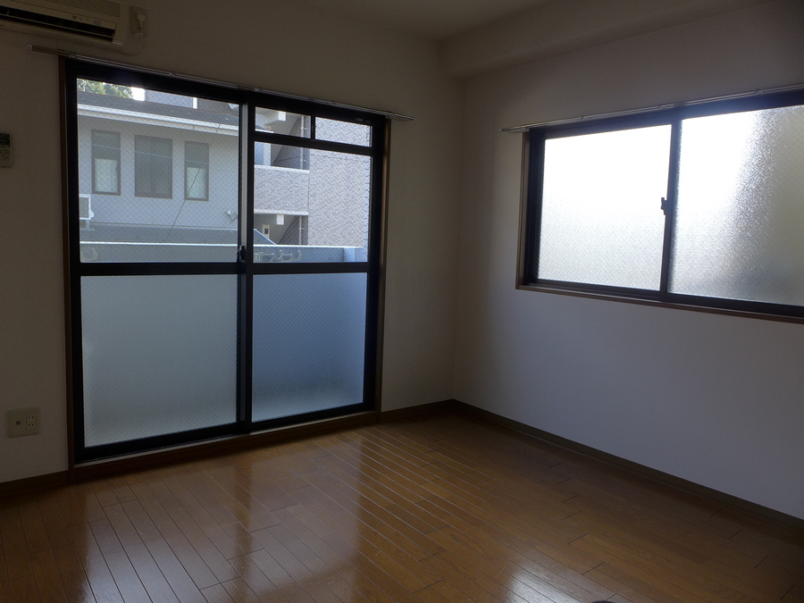- 楽器不可、2人入居不可、ペット不可、保証人要、公営水道、都市ガス、下水、専用バス、専用トイレ、バス・トイレ別、シャワー、1口ガスコンロ、給湯、エアコン、バルコニー、角部屋、インターネット使用料無料